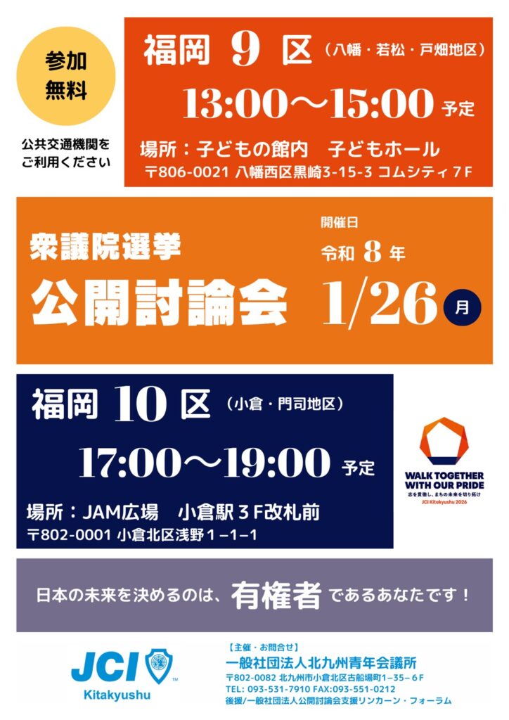 2026年衆議院選挙に向けて、公開討論会を開催いたします。