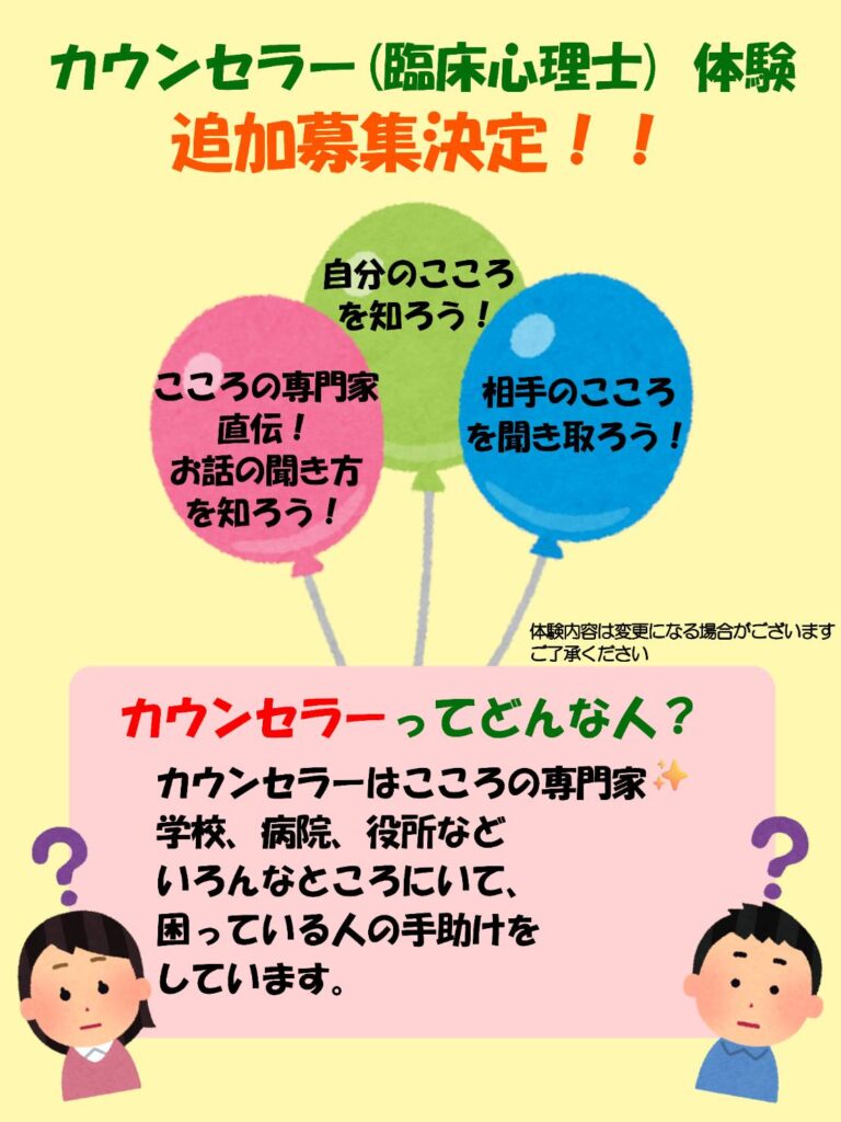 ご好評につき、「カウンセラー体験」の追加募集が決定しました!