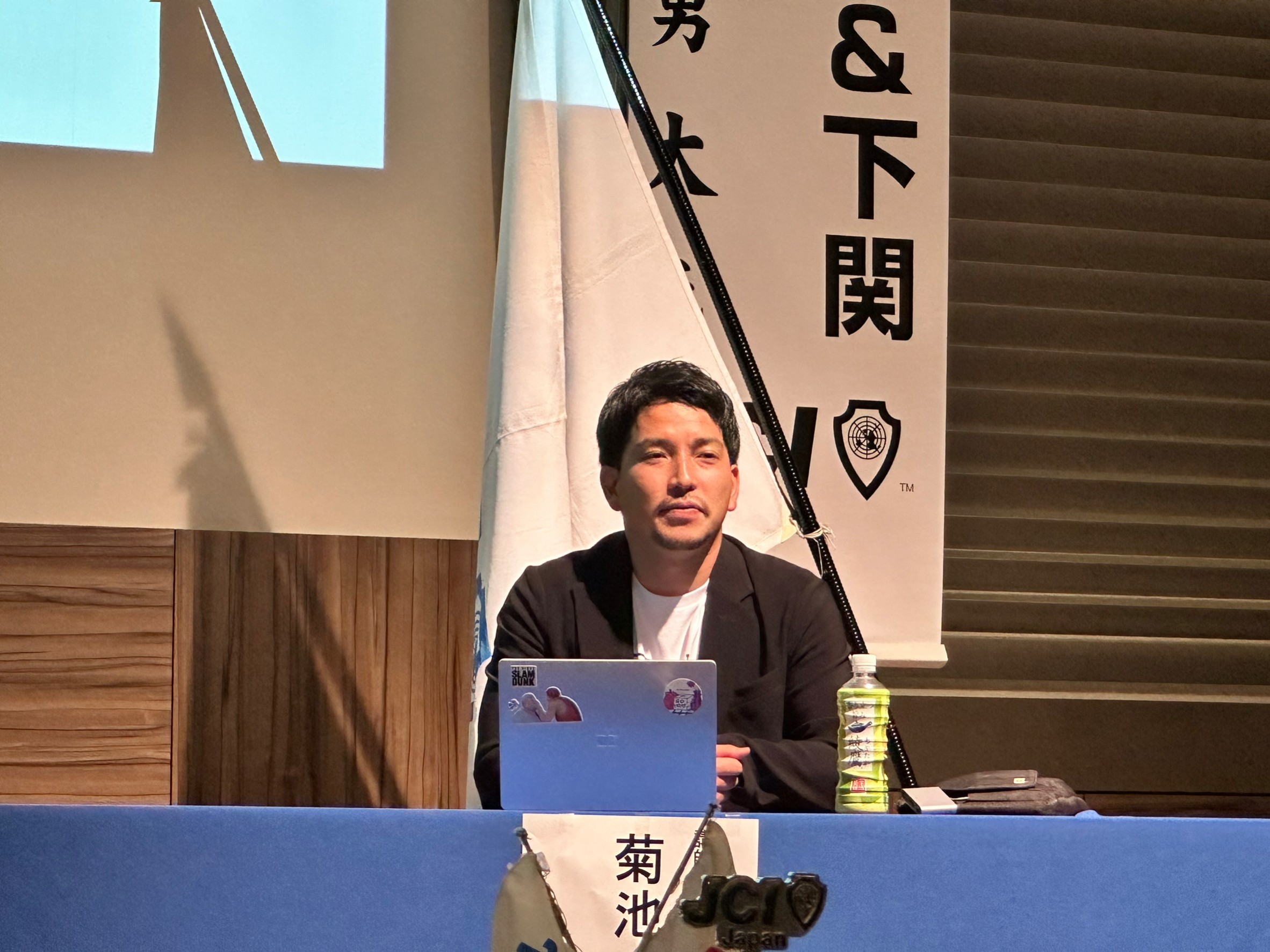 また、例会は「再興!再考!最高!北九州&下関~まちづくり編~」というテーマのもと、ゲストにJCI下関のメンバーが訪れ、関門エリアでさまざまな事業を展開する合同会社PORTO代表の菊池勇太様を講師としてお招きし、インバウンドの必要性やDX(デジタルトランスフォーメーション)に関する講演をおこなっていただきました。