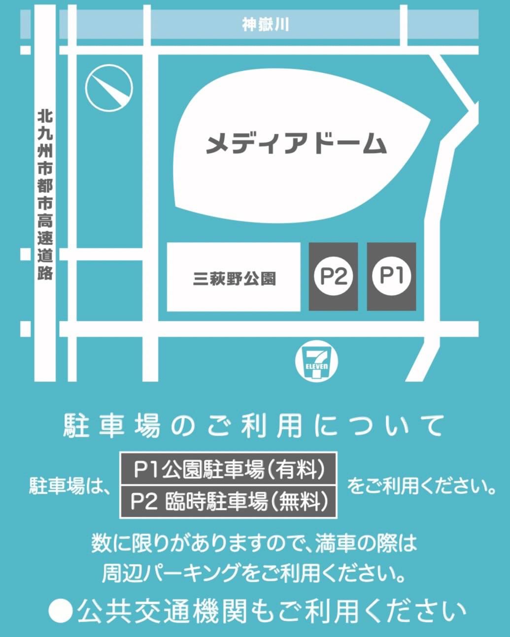 ②駐車場をご用意しておりますが、台数に限りがありますので、できるだけ公共交通機関をご利用ください。お車でお越しの方は、駐車場が満車の際は周辺パーキングをご利用ください。