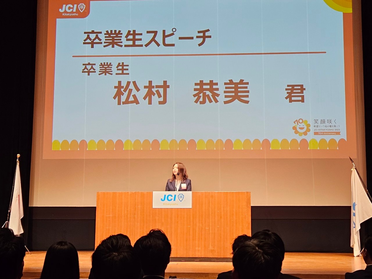 終盤には今年で卒業するメンバーによるスピーチの時間が設けられ、松村 恭美君、瀧本 陽子君、鎭西 孝行君の3名にJCでの思い出などをスピーチしていただきました。
