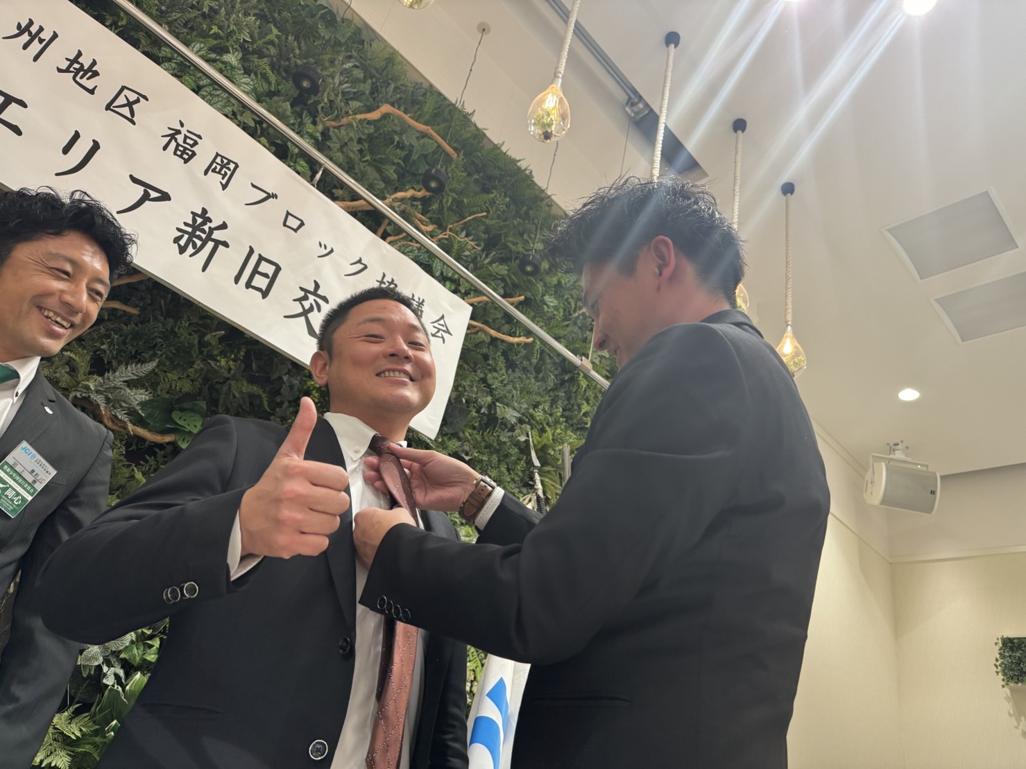 北九州からも2023・2024年度の役員が出席し両理事長の挨拶や2024年度の後藤理事長予定者から2023年度の上田理事長にネクタイのプレゼントがございました。