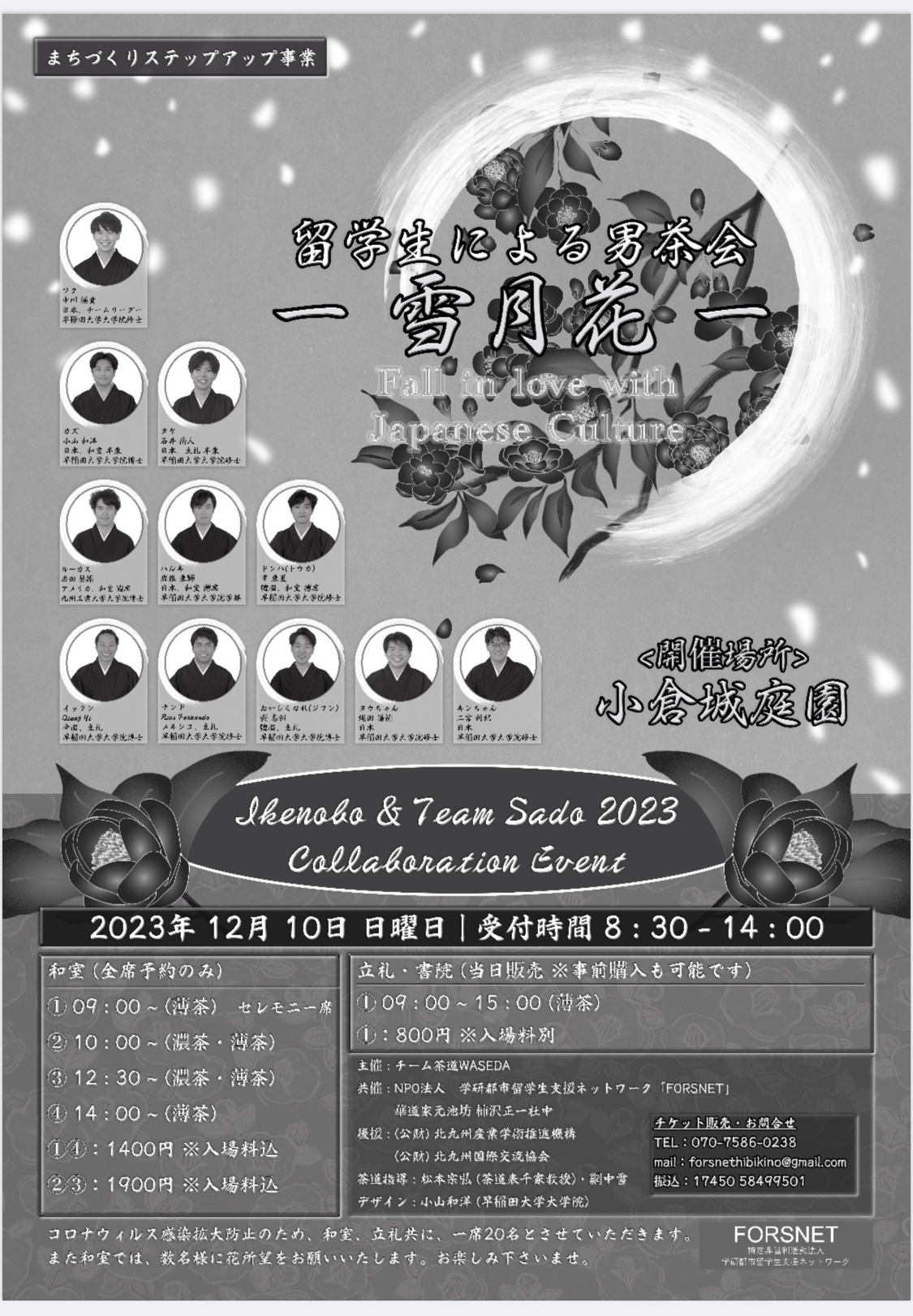 12月10日(日)に小倉城庭園にて「留学生による男茶会」を開催致します。コロナ明けで4年ぶりの事業です。