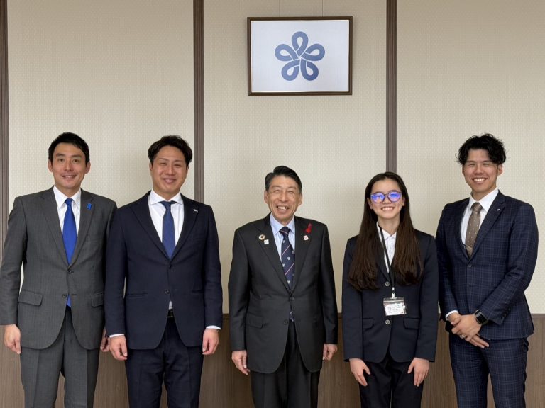 2024年度「JCI JAPANグローバルユース国連⼤使育成事業」のカンボジアおよびフィリピンでの研修を修了し帰国した矢野優花さんが服部県知事と大庭副市長へ表敬訪問をおこないました。